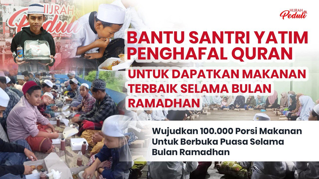 WUJUDKAN 100ribu porsi Hijrah Box selama bulan Ramadhan untuk Santri Yatim Piatu Penghafal Quran